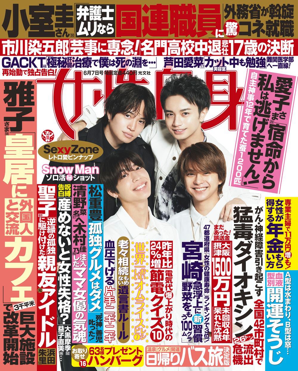 女性自身 ジャニーズ担当 本日5 24 火 発売の 女性自身 は Sexyzone が表紙 Amp 特大ピンナップに登場 ソロと2ショットはそれぞれのメンバーカラー 集合カットはオレンジの背景紙で撮影 80 Sの洋楽をイメージした レトロなsexy Zoneです 佐藤
